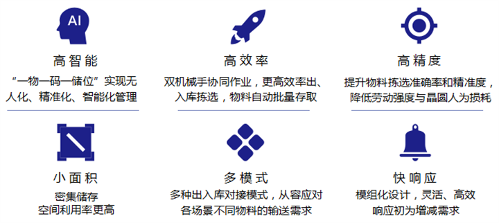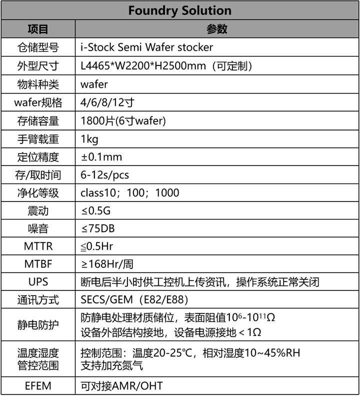 i-Stock Semi-wafer stocker半導(dǎo)體晶圓智能倉儲屬于國內(nèi)先進的半導(dǎo)體晶圓智能倉儲應(yīng)用中的一種新型、高效、安全、穩(wěn)定的晶圓存儲設(shè)備,其設(shè)備對半導(dǎo)體晶圓片實行“一物一碼一儲位”的無人化、精準化、智能化管理,并通過與ERP\MES\WMS等系統(tǒng)的無縫集成,實現(xiàn)晶圓智能化存儲,達到提升效率、減少用工、降低錯料、人工誤作廢料的風險。目前該設(shè)備已在半導(dǎo)體智能倉儲應(yīng)用場景中得到廣泛使用。